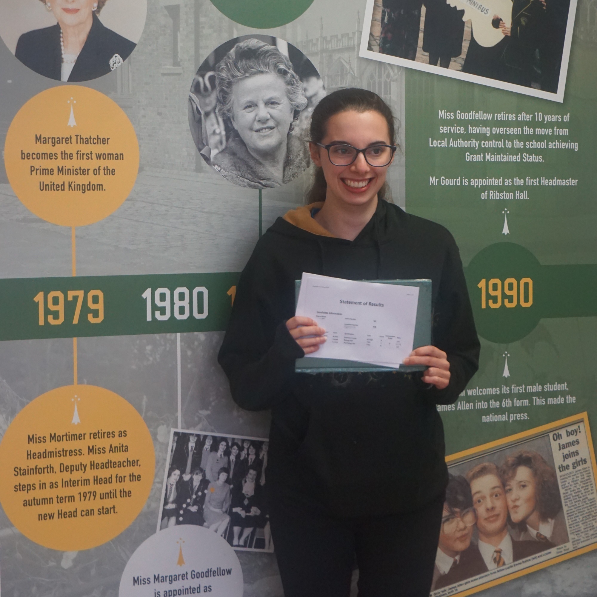 "I am proud of the two years of hard work that I dedicated to my exams and coursework. I know my exam results reflect how hard I worked, and I look forward to my next steps. I am incredibly grateful for all Ribston has taught me and will forever cherish every memory I have made here."