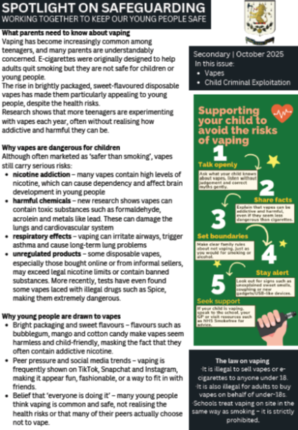 This month’s edition focuses on Vapes and Child Criminal Exploitation.