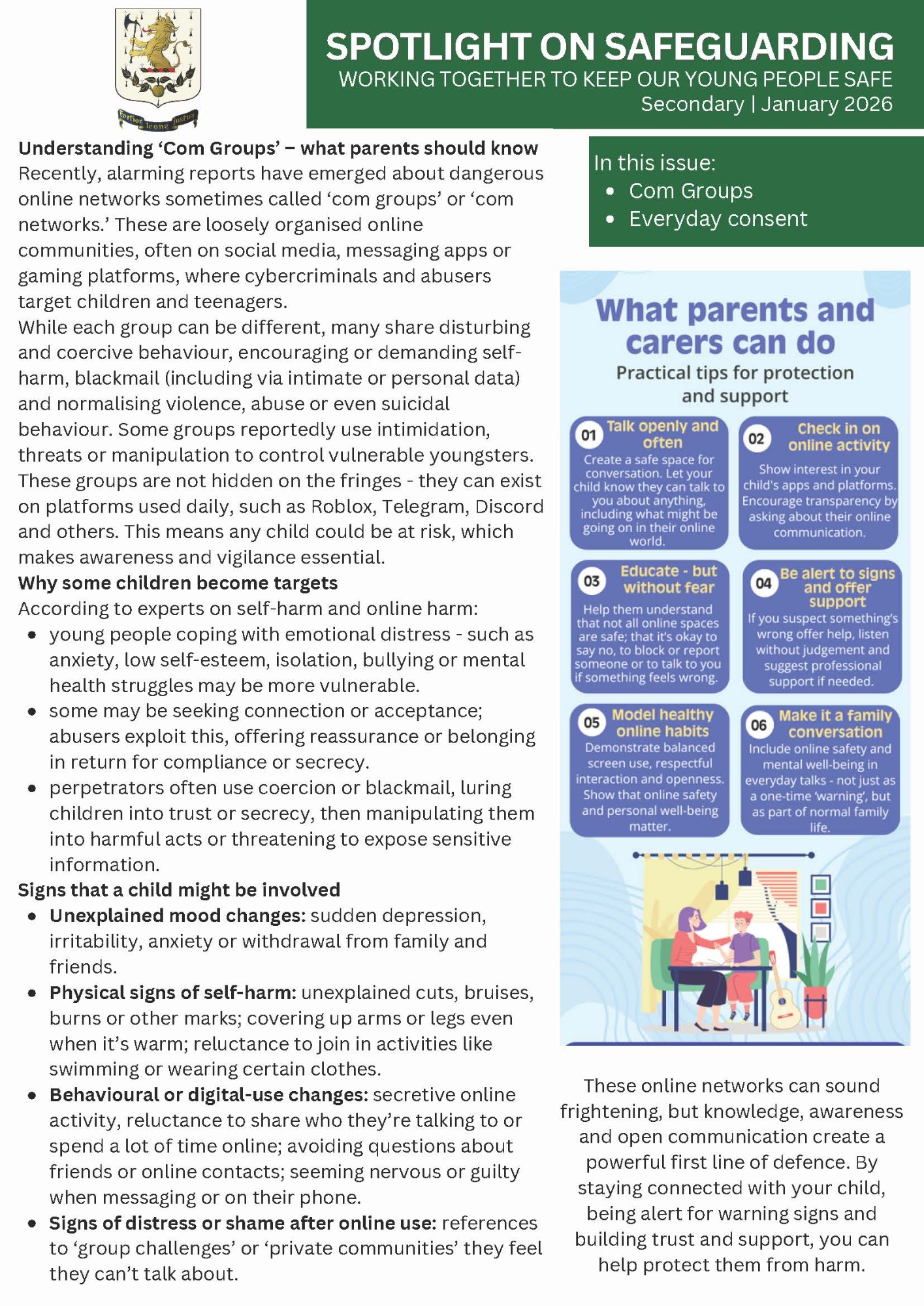 Each month, we share our Spotlight on Safeguarding newsletter to keep parents and guardians informed about key issues affecting young people, along with the latest updates, guidance, and resources related to safeguarding children.
